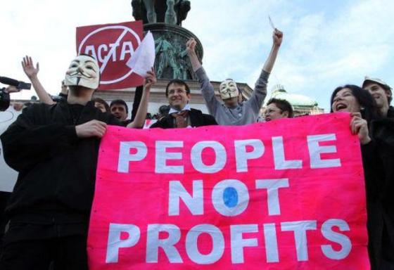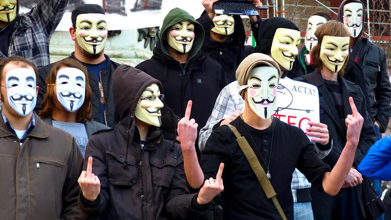 Protest protiv AKTA-e u Beogradu organizovala je šarenolika ekipa okupljena oko pokreta Mi smo 99%, Piratske partije, Zeitgeist pokreta i Wikipedije uz svesrdnu pomoć raznih slobodnih strelaca, od koji su neki bili zakrabuljeni maskom Anonimusa. Drugim rečima, jedna ideološki krajnje difuzna i konfuzna ekipa.